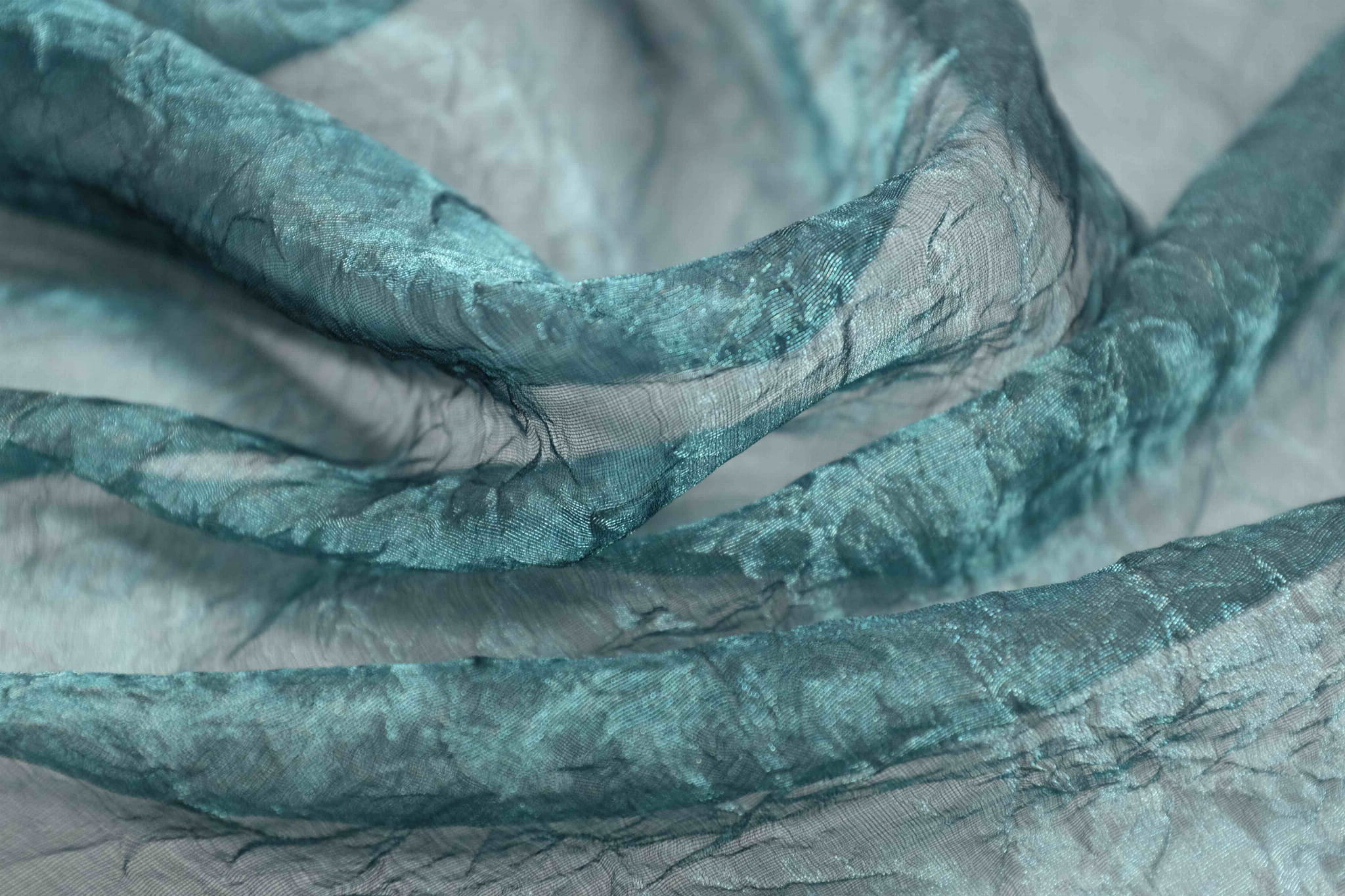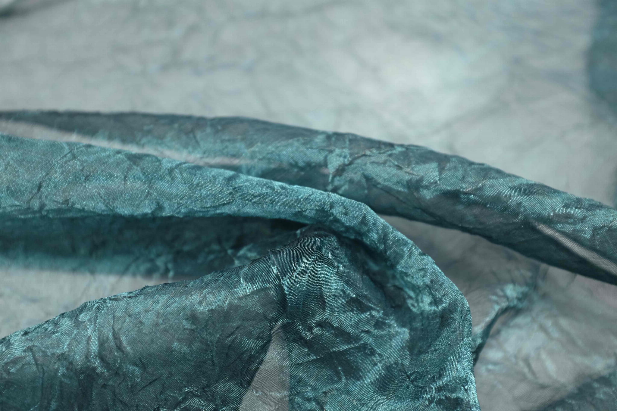 Jedwab Naturalny 100% Organza Kreszowana Metal Turkus