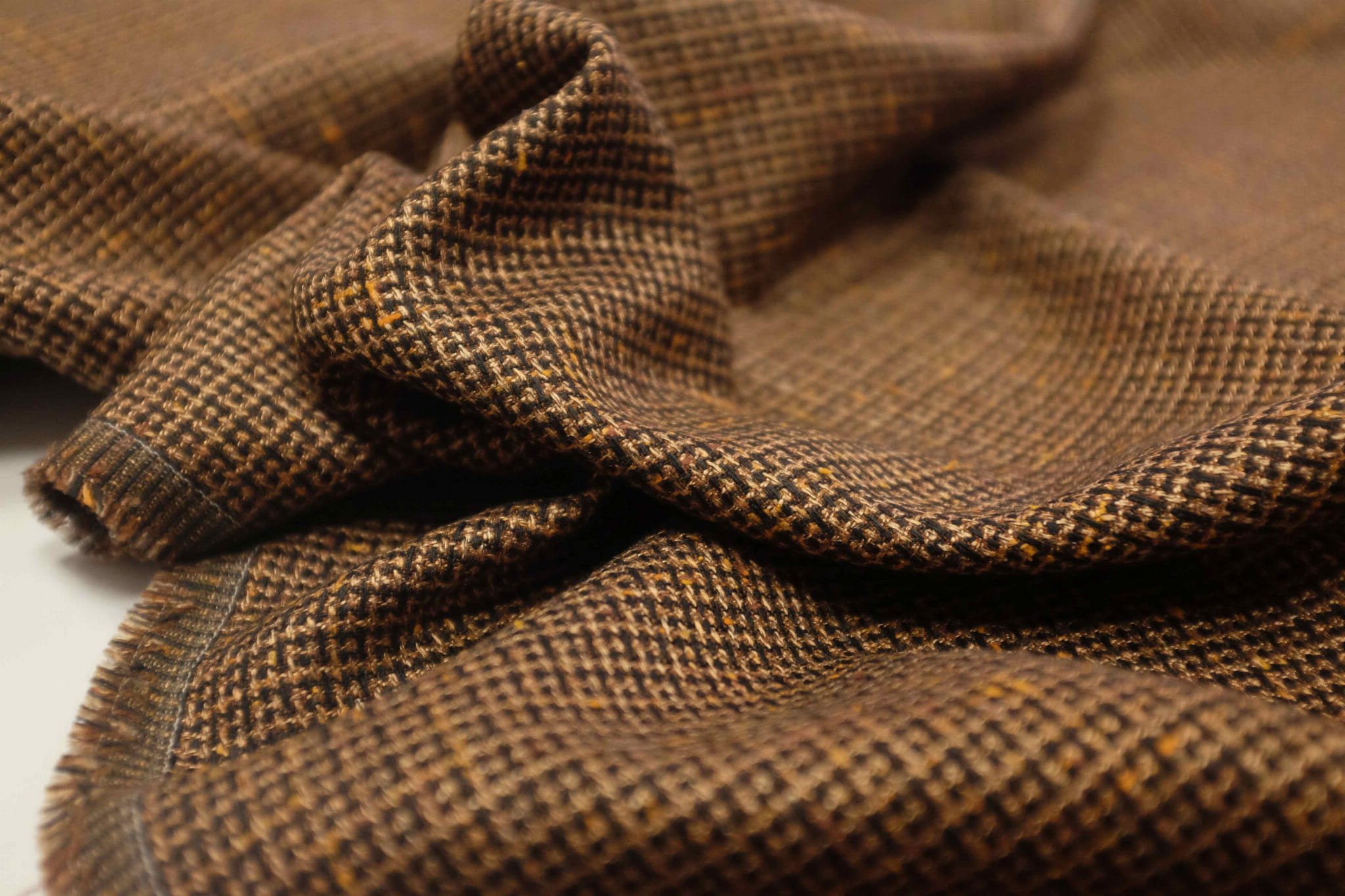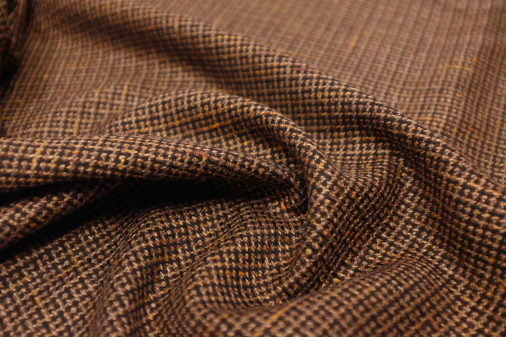 Wełna Poliester Alta Moda Drobna Kratka Brąz/Pomarańcz